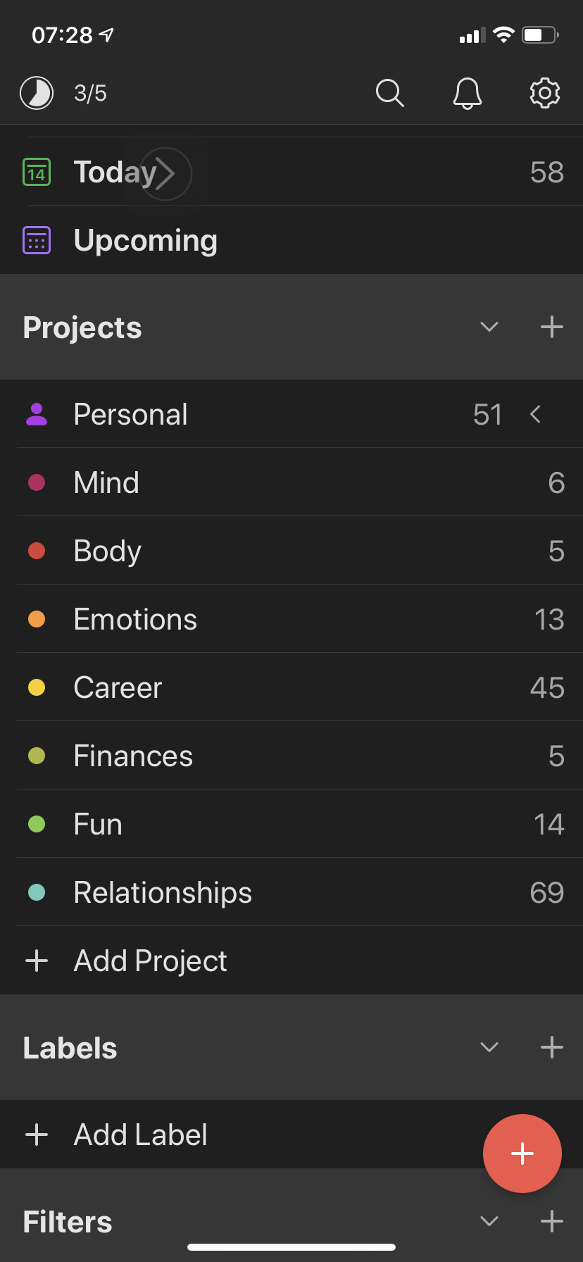I have areas of my life that I focus on to keep balance. Each area is stored as a project in the Todoist app and each project has a list of actions.